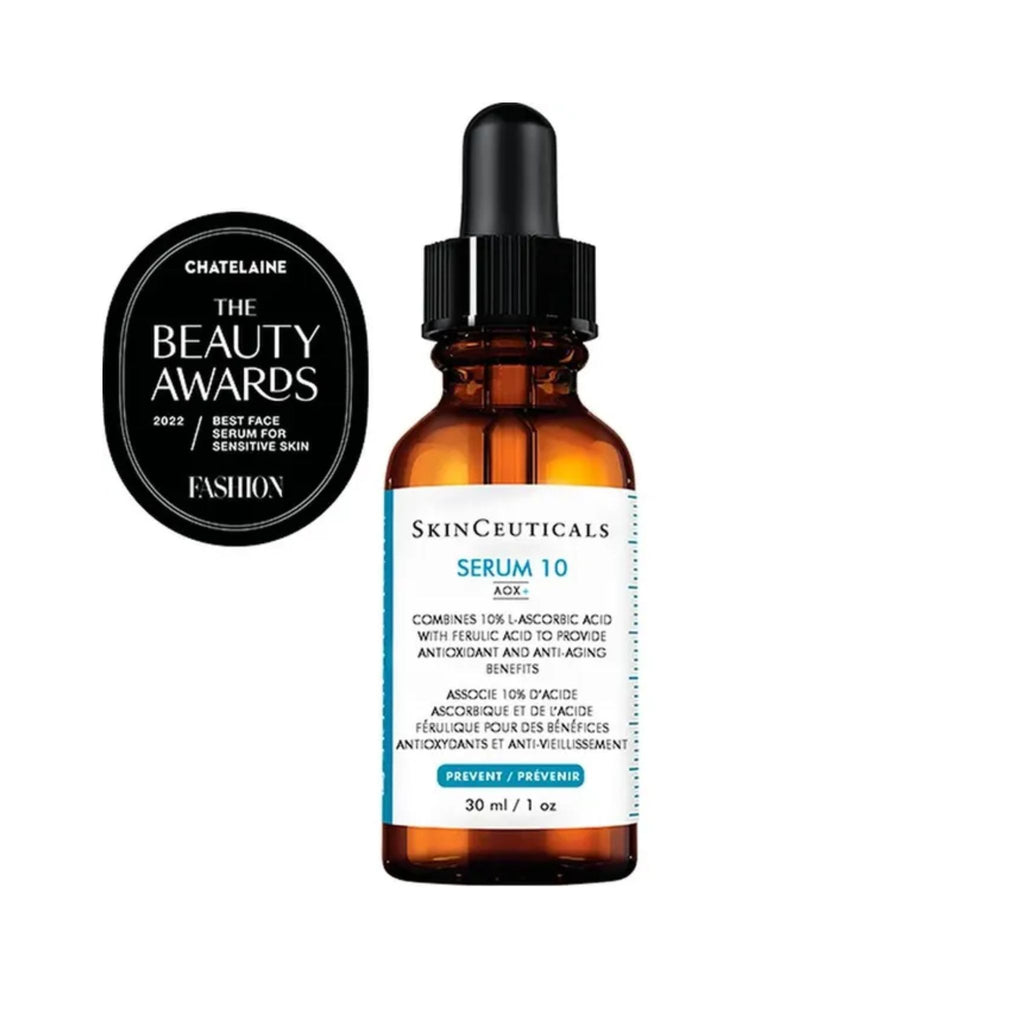 SkinCeuticals Serum 10 AOX+ is a vitamin C serum for sensitive skin that offers improves the appearance of aging.
